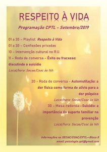 Programação para setembro: Respeito à vida
