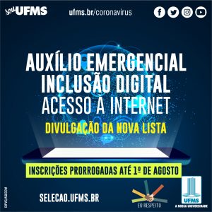 Mais 17 estudantes foram habilitados para receber o Auxílio Inclusão Digital. A lista pode ser acessada no site da Pró-reitoria de Assuntos Estudantis (Proaes), que realiza a ação em parceria com a Agência de Tecnologia da Informação e Comunicação (Agetic) e a Secretaria Especial de Educação a Distância (Sead).
