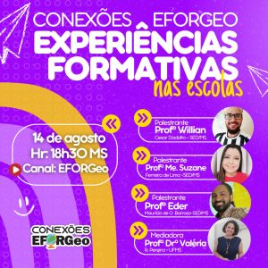 Participe da mesa-redonda “Conexões EFORGeo e as Experiências Formativas na Escola”, em 14 de Agosto de 2024 às 18h30 (MS), com transmissão ao vivo pelo canal EFORGeo no YouTube.