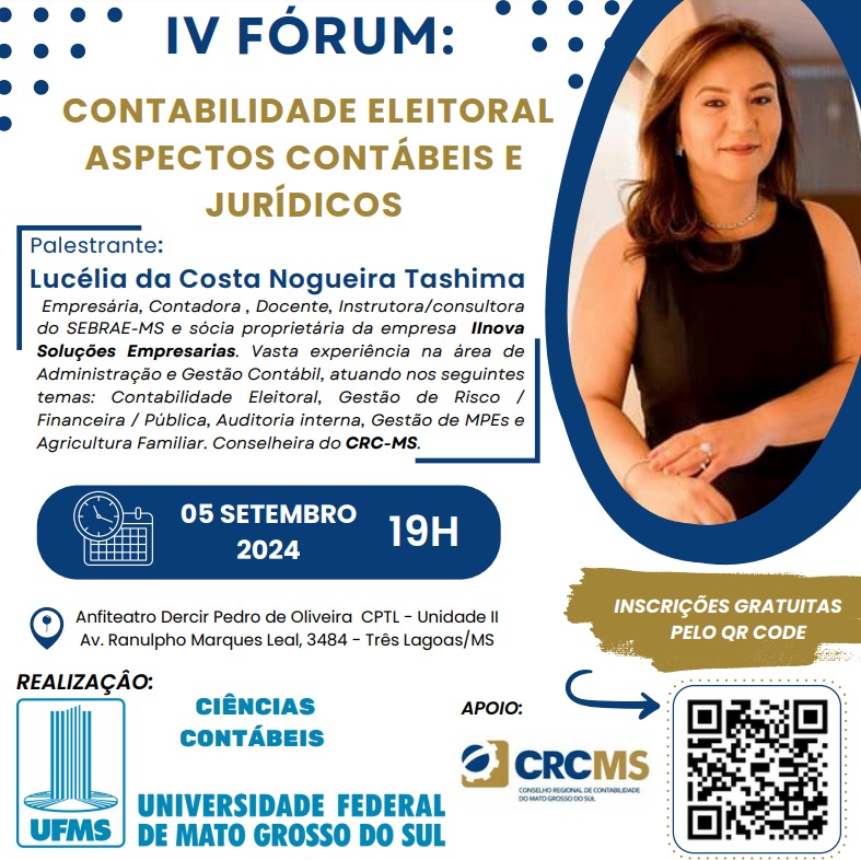 O evento tem como público-alvo estudantes / profissionais das áreas de Ciências Contábeis, Direito, Administração, candidatos as eleições de 2024, membros de partidos políticos e demais interessados.
