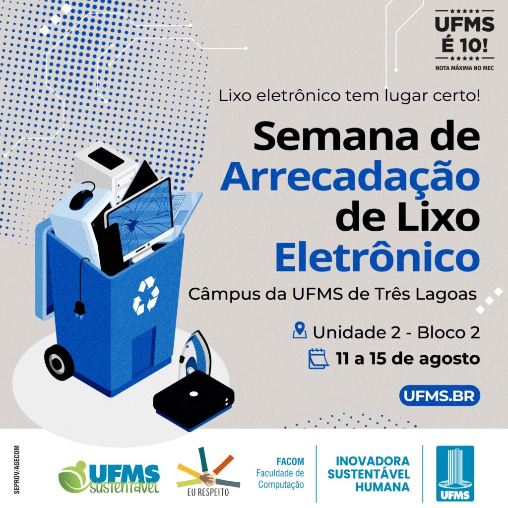 “Ao recolhermos esses resíduos, evitamos que componentes prejudiciais contaminem o solo e a água, protegendo ecossistemas e a saúde pública. Além disso, o lixo eletrônico é rico em metais e outros materiais que podem ser reciclados e reutilizados, reduzindo a necessidade de extração de novos recursos naturais e diminuindo o impacto da produção industrial. É um ciclo virtuoso que exemplifica a economia circular e o compromisso da UFMS com um futuro mais verde”, complementa.